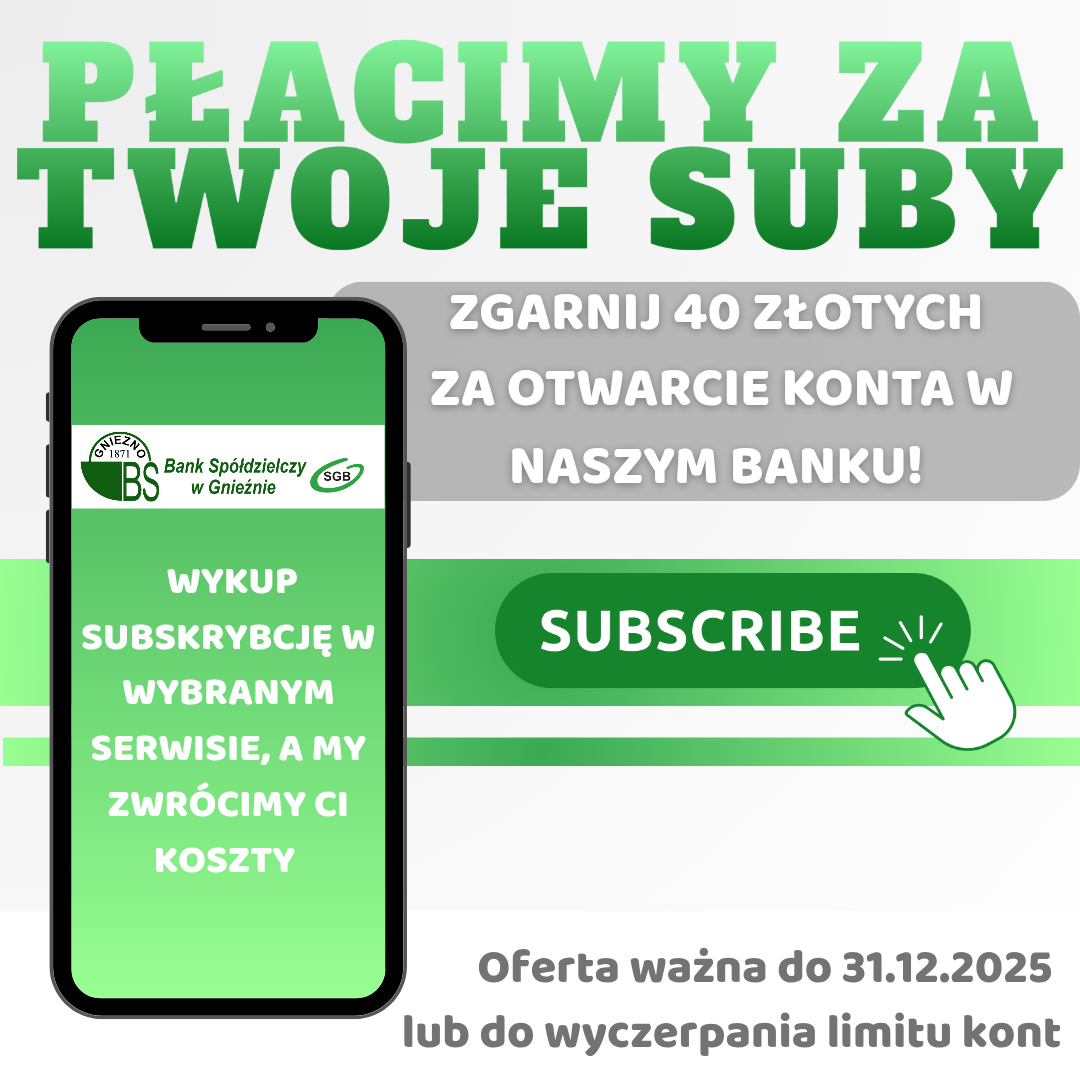 Promocja: „PŁACIMY ZA TWOJE SUBY” Wspólnie z Radą Młodzieżową "Bank Młodych Umysłów" - stworzyliśmy coś SPECJALNIE DLA WAS! Wprowadziliśmy nową promocję dla osób w wieku 18–26 lat. Załóż konto młodzieżowe: